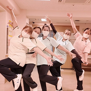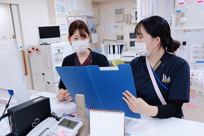 当院は一般病床と地域包括ケア病床、回復期リハビリテーション病棟、医療療養病棟を有し、急性期の治療を終えて、回復期や慢性期に入った患者さんを主に受け入れ、ご自宅に戻っていただくための医療を提供する病院です。私たち看護師は患者さんに寄り添い、リハビリのスタッフなど多くの職種と協力して、患者さんが病気から回復し、ご自宅や施設での生活の困らない状態になるまでトータルなケアを提供します。看護師は患者さんやご家族の希望を汲み取って、院内・院外の多職種に伝える連携の中心といえる役割を果たします。