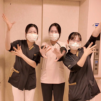 看護師の働き方改革にいち早く取り組んできたのも、当院の特徴です。子育て、介護といった家庭の事情などでフルタイム勤務が難しくなった場合、本人の意向に合わせてフレキシブルに勤務体制を変え、時短勤務や週何日だけという要望にも対応しています。本人や家族の病気などで誰かが急に休んでも、部門の壁を越えて応援体制に入り、仲間が助け合う温かい雰囲気があります。