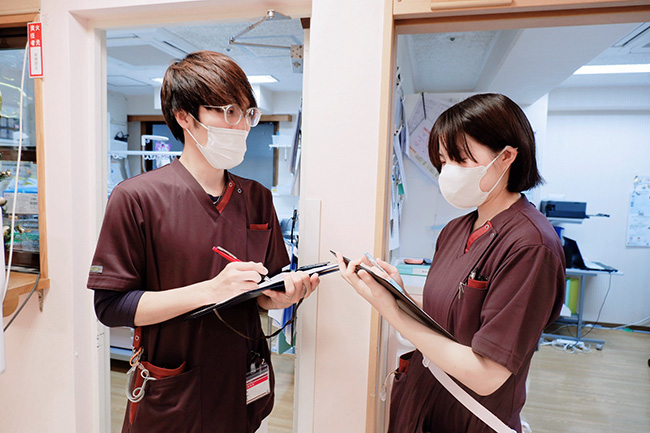 一方で、看護協会主催の研修会など、院外での研修に参加することを奨励しています。他施設の方々からさまざまな話を聞き、意見交換することで、モチベーションが高まります。また、准看護師から看護師にステップアップしたい方は、当院で働きながら数分の距離にある上板橋看護学校で学べます。